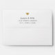 Custom-designed wedding return address envelope featuring modern typography and gold heart design.