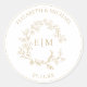 Modern Gold Leafy Crest Monogram Wedding Classic Round Sticker