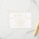 This wedding enclosure card displays a classy gold line with two overlapping semi-circles on the right and a dot on the left against a white background. The back is adorned with the couple's names in gold, against a white backdrop, giving a graceful, sophisticated appeal. If the names on the back need more or less space, you can customise it to adjust the text size.