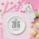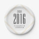 This graduation paper plate features a very clean and minimal design. Three gold lines form a diamond shape around the text. The background is white. Customisable text allows you to add the graduating year and the graduate's name. This is perfect for high school as well as college graduations.