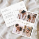 Simple and modern 4 photo wedding thank you postcard. This card can be used for a wedding, bridal shower, engagement, anniversary, or any special event. For more advanced customisation of this design, please click the Customise Further link to change the font, size, colour, etc.