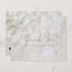 Modern budget business thank you card featuring a simple and minimalist layout with "Thank You" on the front in an elegant script typography over a faux gold marble background. The back has your personal message along with your QR code and social media icons. This professional thank you card is great for any small business.