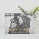 Celebrate your recent wedding with a modern married and merry holiday photo card. The chic photo card features faux gold foil, modern script font, placeholder for your photo, and personalised message on the back.