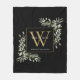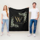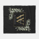 Modern Gold Monogram Greenery Floral Black Fleece Blanket