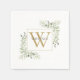 Elegant watercolor eucalyptus greenery leaves monogram name napkin featuring a gold monogram initial. Designed by Thisisnotme©