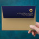 Modern Gold Monogram Navy Blue Return Address Envelope