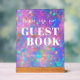Looking for an elegant modern wedding guest book? Look to our Modern Gold Opal Wedding Sign Our Guest Book. Featuring bold calligraphy that adds a touch of sophistication, this opal guest book offers a clean, simple look. This minimalistic wedding guest book has a modern twist bound to captivate those with an eye for subtle sophistication. This stylish wedding sign features a beautiful digital opal stone and gold effect.