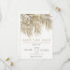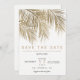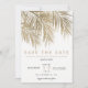 Modern simple faux gold palm tree with simple typography, a trendy and tropical save the date wedding theme on palm tree leaf.