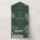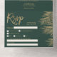 Modern gold palm tree tropical green wedding all in one invitation