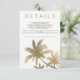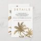 Modern wedding details simple faux gold palm trees with simple typography, a trendy and tropical wedding theme on palm tree leaf. Add your directions, accommodations instructions.
