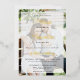A modern and trendy double-sided all-in-one wedding invitation displaying your wedding information over one of your favourite pictures with a transparent overlay and accented by elegant script typography in real gold foil.