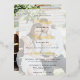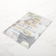 A modern and trendy double-sided photo wedding invitation displaying your wedding information over one of your favourite pictures with a transparent overlay and accented by elegant script typography in real gold foil.