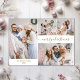 Budget Minimalist Elegant Calligraphy White and Gold Multiple Christmas Photo PostCards. This festive, simple 5 (five) photo holiday card template features a pretty photo collage (on front 4 photo and back 1 photo), a „Merry Christmas” greeting text which is written in a beautiful hand lettered whimsical swirly swash-tail font type in gold on white colour background. On the reverse side with your greeting message template and one horizontal photo template. Pretty greeting postcard for your family and friends in Christmas Holiday season. Cheap affordable Holiday postcards.