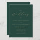This simple, modern wedding invitation features gold-coloured text on an emerald green background, with the words "the Wedding of" in elegant handwriting calligraphy. Add the couple's names in serif and the wedding details in sans serif font. The reverse side is solid green.