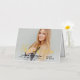 Stylish and elegant folded graduation thank you card features a senior photo with trendy "thank you" real gold foil script overlay. Personalise the modern custom text with your grad's name, school, and class year. A custom thank you message can be added or handwritten inside the card.