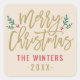 Modern Gold Script Merry Christmas Custom Square Sticker