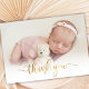 Modern Gold Script Newborn Baby Photo Thank You Card