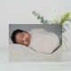 This modern photo baptism invitation features hand lettered calligraphy script "baptism" art that is moveable, a landscape photo and editable gold foil pressed text. Available in rose gold foil, silver and gold foil as shown. Click the edit button to customise this design.