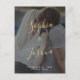 This modern save the date postcard features gold calligraphy and an elegant faux vellum look. On the front of the postcard, the couple's names are written in gold script. Below, add the wedding date and location, written in white. The gold and white typography design overlays a full photo (vertical orientation). On the back of the save the date, add wedding details such as the wedding website.