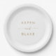 These modern gold script wedding cake paper plates are perfect for a minimalist wedding. The simple yellow gold colour design features unique industrial lettering typography with modern boho style. Customisable in any colour. Keep the design minimal and elegant, as is, or personalise it by adding your own graphics and artwork. These disposable paper plates are perfect for the cake or dessert table. Personalise them with the names of the bride and groom.