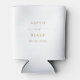 This modern gold script wedding favour can cooler is perfect for a minimalist wedding. The simple yellow gold colour design features unique industrial lettering typography with modern boho style. Customisable in any colour. Keep the design minimal and elegant, as is, or personalise it by adding your own graphics and artwork. Personalise the can cooler with the names of the bride and groom and the wedding date.