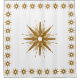 Modern design features a central golden starburst as the focal point with a complimentary patterned border of smaller gold starbursts.