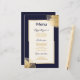An elegant yet modern design featuring faux gold foil luminous succulents in opposite corners of this wedding menu. A dark blue background with matching text colour for the headings.
