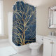 Modern Gold Tree Silhouette Minimal Blue Design Shower Curtain