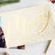 Modern Gold White Merry Christmas Frame Photo Foil Holiday Card