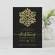 Modern Gold Winter Snowflake Christmas Black Invitation