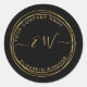 Sticker logo with modern golden circular entwined pattern on black background surrounding your monogram initials and company name. You can change the background colour