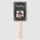 Modern, elegant hand fan funeral program. Design features single photo, calligraphy script ''in loving memory'' and elegant gold frame on the front. Personalise with the details on the back. All text can be easily edited.