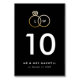 Featuring interlocked faux foil gold wedding rings, this double sided black table number is a great addition to your reception decor. Personalise all the text including the two letter couple's monogram, the table number and get creative with the two lines of text at the bottom like your new last names, wedding date, location and even custom table names or a note about your love story.
