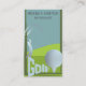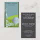 These golf instructor business cards are perfect for making a great first impression. The modern design of a golfer and a golf ball in front of a green hill background is sure to stand out. You can add your name, experience, services, introductory text and contact details.