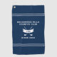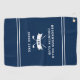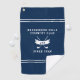 Upgrade your game-day essentials with this sleek Personalised Black Golf Towel featuring monogram initials and a modern crossed-clubs emblem. Designed for golfers who value both timeless style and practical function, this customisable golf towel makes a striking addition to any bag. The bold navy blue background, accented by clean white dividing stripes, creates a sophisticated layout that highlights your custom text. Personalise the centre with your country club name, a favourite golf quote, or any message that reflects your identity on the green. Below, classic white crossed golf clubs are framed by a curved ribbon banner that showcases your custom monogram initials, adding an elegant, personalised flourish. A final line beneath the design lets you display the year established or another meaningful detail, making this towel a memorable keepsake. Ideal for Father's Day, golf tournaments, birthdays, or gifts for your favourite golf enthusiast, this monogram golf towel balances professional polish with standout personalisation—perfect for making your mark on the course.