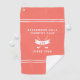 Upgrade your game-day essentials with this sleek Personalised Coral Golf Towel featuring monogram initials and a modern crossed-clubs emblem. Designed for golfers who value both timeless style and practical function, this customisable golf towel makes a striking addition to any bag. The bold colour background, accented by clean white dividing stripes, creates a sophisticated layout that highlights your custom text. Personalise the centre with your country club name, a favourite golf quote, or any message that reflects your identity on the green. Below, classic white crossed golf clubs are framed by a curved ribbon banner that showcases your custom monogram initials, adding an elegant, personalised flourish. A final line beneath the design lets you display the year established or another meaningful detail, making this towel a memorable keepsake. Ideal for Father's Day, golf tournaments, birthdays, or gifts for your favourite golf enthusiast, this monogram golf towel balances professional polish with standout personalisation—perfect for making your mark on the course.