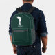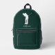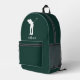 Modern Golfer Silhouette Script Monogram Green Printed Backpack