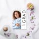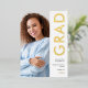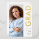 Modern Grad 2025 Photo Gold Real Foil Announcement.. The elegance of real foil in gold for the rotated typography, Grad and the year, with the rest of the text in black including your message on the back. Replace the photos on each side with your two favourites.