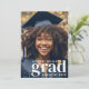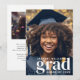Announce your student's graduation with this modern graduation announcement featuring 2 photos. The front of the announcement has a full-bleed photo covering the announcement along with modern text spelling out "grad", your graduate's name and class year. The back of the announcement has a 2nd photo template with a text template to personalise with your desired text.