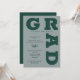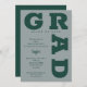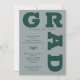 GRAD in bold dark green lettering curves around the edges of these grey graduation party invitations. SEE ENTIRE COLLECTION of pre-done colours, paper plates, napkins, yard and car signs and more in our store.