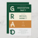 Celebrate your graduate’s achievement with this modern and stylish Forest Green & Bronze Graduation Invitation. Featuring bold typography and a sleek striped layout in deep green, warm bronze, ivory, and crisp white, this design perfectly balances sophistication and celebration. The unique “GRAD” letter design adds a contemporary touch, while customisable details allow you to personalise the graduate’s name, party date, time, and location. This invitation sets the perfect tone for an unforgettable graduation party!