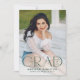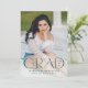Announce your high school or college graduate's graduation with this modern graduation announcement. The graduation announcement displays "Grad" in trendy dark green lettering with the graduation year displayed inside of the letter 'd'. Personalise the front of the announcement with the graduate's vertical senior photo, name, and school. The announcement reverses to feature an additional photo displayed inside of a white square frame with your message shown below.