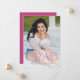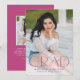 Announce your high school or college graduate's graduation with this modern graduation announcement. The graduation announcement displays "Grad" in trendy magenta pink lettering with the graduation year displayed inside of the letter 'd'. Personalise the front of the announcement with the graduate's vertical senior photo, name, and school. The announcement reverses to feature an additional photo displayed inside of a white square frame with your message shown below.