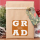 GRAD in bold white lettering fills the corners of these burnt orange background grad square stickers. Congratulations above the name of your graduate and the Class of below. SEE ENTIRE COLLECTION of pre-done colour combinations, invitations, paper plates, napkins, signs and more in our store.