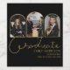 Party the night away at your graduation party, with these modern, personalised arched 3 photo wine labels. Featuring a black backgound, script which reads 'GRADUATE', your favourite graduation photo's in the shape of arches, with a border of gold and personalised with, your school/college name and the class of 20XX. Background colour can be changed by clicking on the customise further link after personalising.
