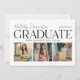 Two sided graduation announcement and grad party invitations feature a photo collage of 3 pictures on the front with modern and stylish serif and script typography design that can be personalised for the graduate. The back of the card features grad party graduation celebration information that can be customised for your special event.