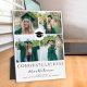 Simple elegant minimalist trendy chic typography personalised multi photo collage graduation create your own keepsake plaque with four custom photos, graduate hat, and your text.