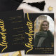 Celebrate and announce your daughter’s college, university or high school graduation with this stunning stylish gold and black graduate photo arch graduation announcement card. Featuring elegant gold script calligraphy and a gold arch graduate photo template, this design captures the excitement of new beginnings and joyful celebration. Personalise it with a cherished photo of your graduate using the easy-to-use photo template, and highlight event details in stunning typography. Designed by artist Catherine Sweetman, this unique invitation beautifully combines elegance with the thrill of your daughter’s achievement, making it the ideal way to gather loved ones and mark this special milestone.