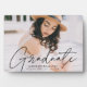 Celebrate your graduate's achievement with a custom graduation photo keepsake. The photo plaque features the graduate's horizontal photo with "graduate" displayed in a trendy black script. Personalise the modern graduation photo plaque by adding the graduate's name, school, and graduation year.