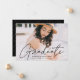 Celebrate the grad with our stylish photo graduation announcement. The graduation announcement displays the graduate's photo with "Graduate" in a black modern calligraphy script overlay. Personalise the front of the modern graduation announcement by adding the graduate's name, school name, and graduation year. The announcement reverses to feature a trendy black and white dotted geometric pattern. The design is perfect for both high school and college graduates.
